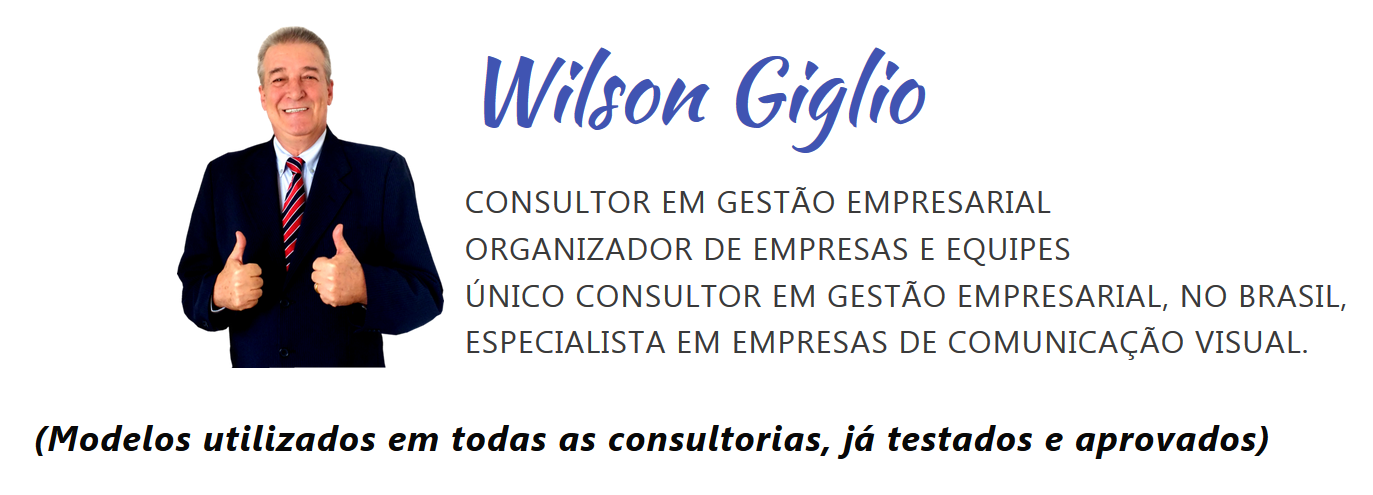 Para sabermos como a sua empresa está (organizada) e o que será necessário implantar para deixa-la totalmente em ordem, solicite o DIAGNÓSTICO EMPRESARIAL no meu Teams (wilson.giglio1) para análise e registro, pois fará parte do nosso CONTRATO DE PRESTAÇÃO DE SERVIÇOS.